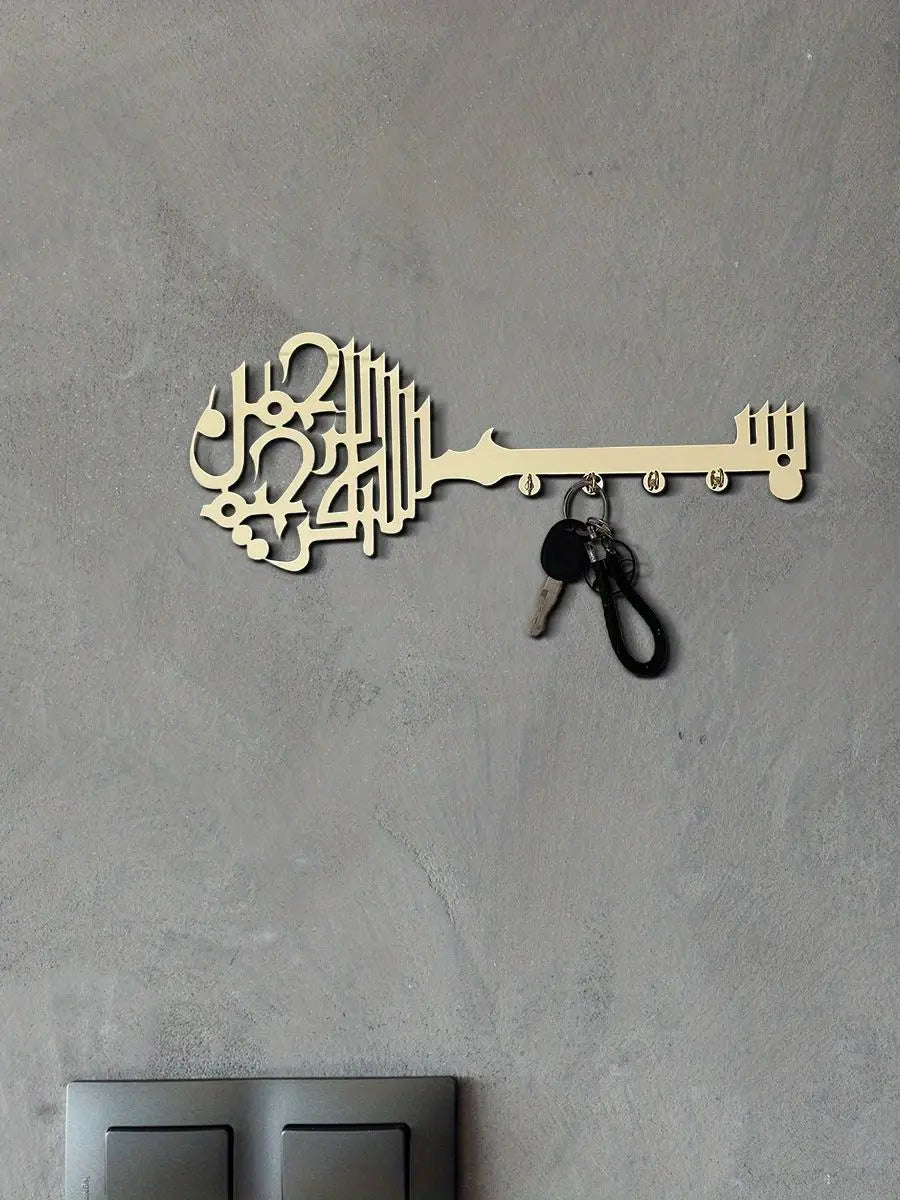 Add a meaningful and functional accent to your home with this Bismillah key wall decor, designed to combine Islamic calligraphy with everyday practicality. Featuring a refined key-shaped silhouette and elegant Bismillah script, this piece serves as both wall décor and a convenient place to hang keys.